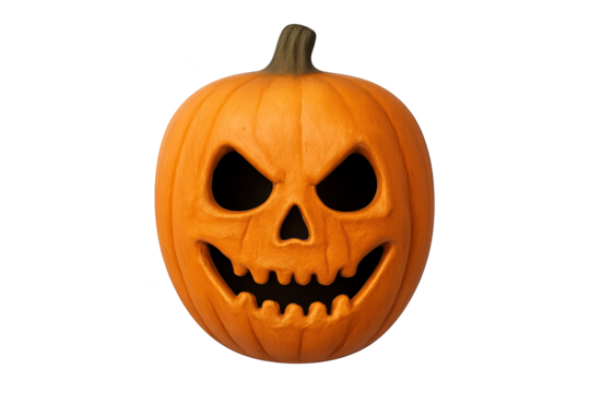 Spooky Halloween jack o lantern pumpkin with an evil orange smile and scary face isolated for autumn holiday decoration