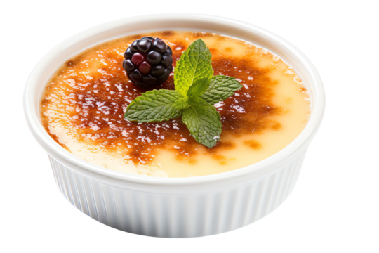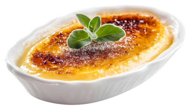 Delicious creamy creme brulee with a caramelized sugar topping. transparent background