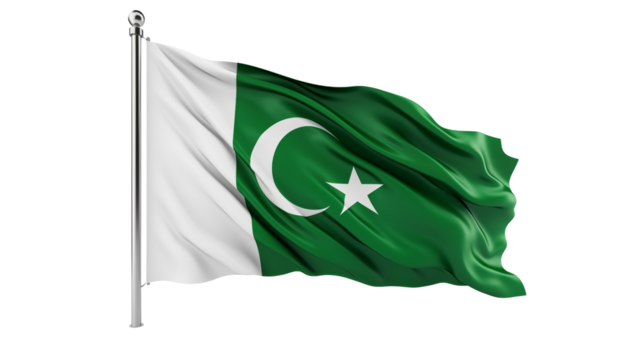Waving flag of Pakistan, national symbol, isolated on transparent background