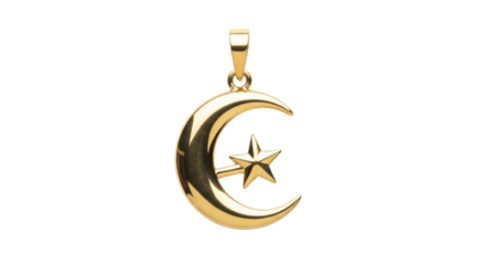 Golden crescent moon and star pendant on black background jewelry, Isolated On Png Transparent Background
