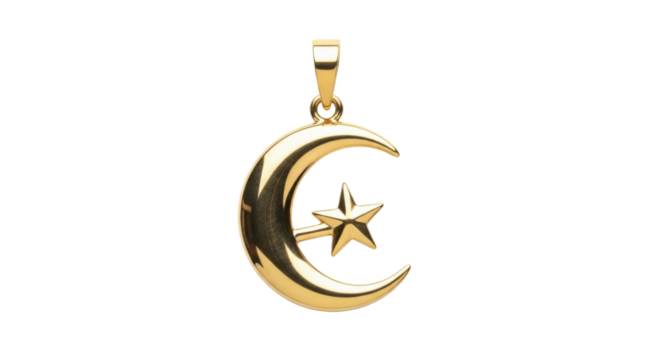 ornate golden crescent moon with hanging star pendant islamic jewelry