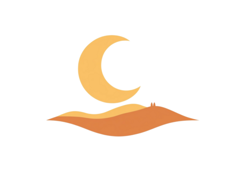 Gentle hands cupping a glowing crescent moon shape emitting warm light isolated on white background