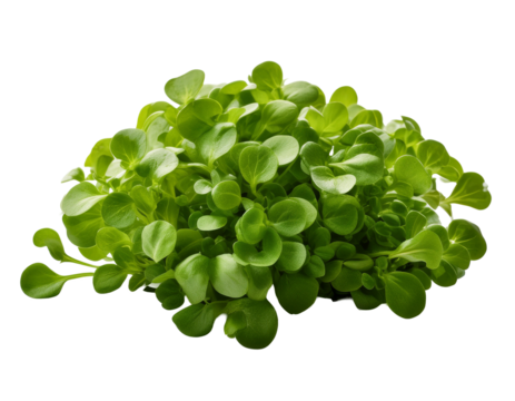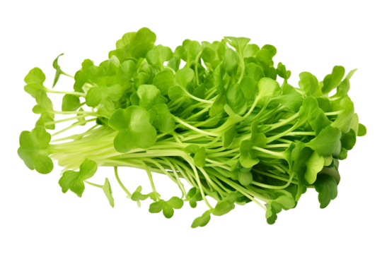 Curly cress plant isolated on a white transparent background. Watercress healthy dishes and fresh salads
