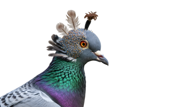 Elegant bird with elaborate plumage and fan tail isolated on transparent background