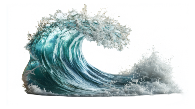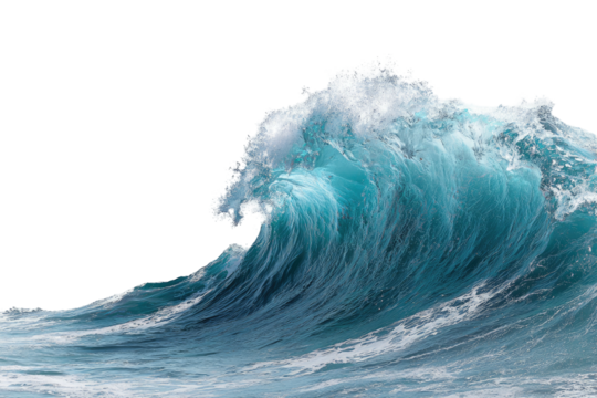 Majestic Turquoise Wave: A powerful, photorealistic turquoise wave crests, its frothy foam contrasting with the deep ocean hue, showcasing the raw energy of the sea.