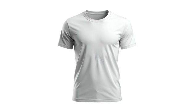A plain white crew neck t-shirt floats against a black backdrop, clean design