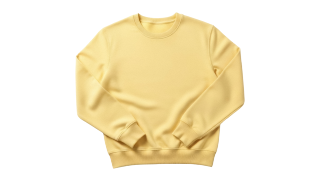 Yellow sweatshirt isolated PNG on transparent background, casual cotton apparel for fashion and everyday wear, comfortable and stylish clothing