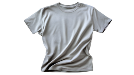 Vintage washed gray T-shirt, crew neck, flat lay style, realistic cotton texture, isolated on white background, soft wrinkles and creases visible