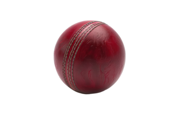 Shiny red leather cricket ball with stitched seam isolated on transparent background