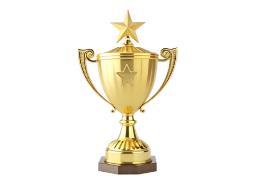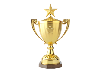 A golden trophy with a cricket ball on top, symbolizing victory and achievement in the sport isolated on transparent background shiny and prestigious