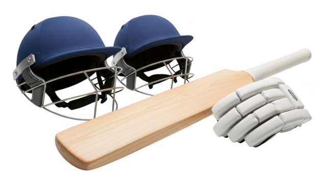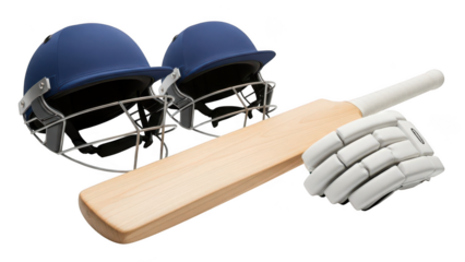 Cricket Equipment: Helmets, Bat, and Gloves on Black graphic design isolated on a transparent background