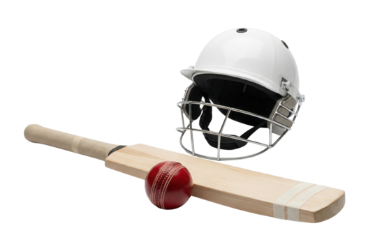 3D Cricket Equipment Set with Bat, Helmet, and Ball on transparent Background