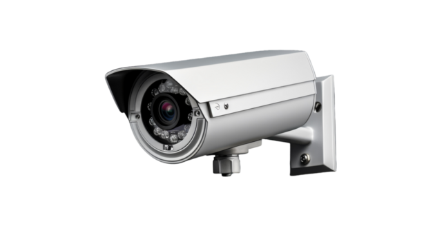 A security camera positioned on a white background, ready to monitor and protect on transparent background