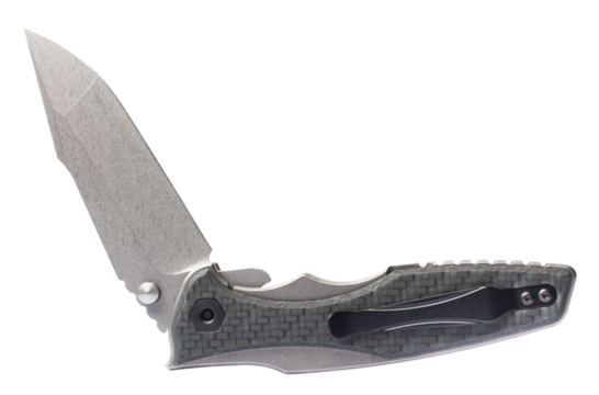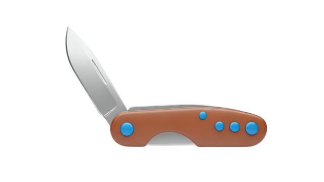 A sharp folding pocket knife with a green handle isolated on transparent background