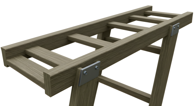 FARMING - Wooden folding ladder isolated on white background, carpenter tool for construction and home use