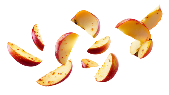 Falling Red Apple Slices with Spicy Seasoning on Transparent Background, PNG