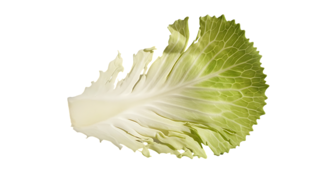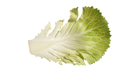 A single, crisp lettuce leaf, isolated on transparent background, showcasing its vibrant green color, curly edges, and fresh texture, perfect for salads and healthy meals