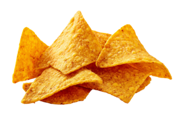 A pile of tortilla chips with a white background