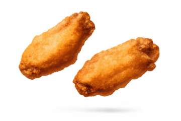 Assorted crispy chicken wings arranged on a white background, showcasing delicious texture