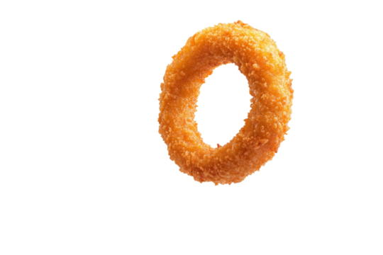 Fried onion ring isolated on transparent background with crispy golden texture and delicious look