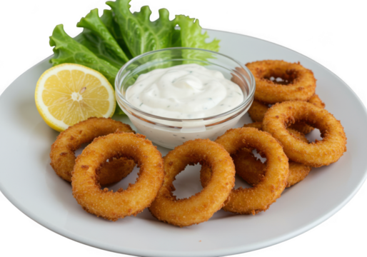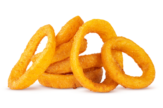 Delicious crispy fried onion rings appetizer isolated on transparent background