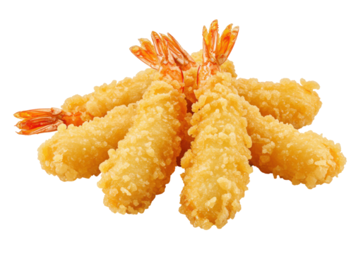 Crispy golden fried shrimp tempura isolated on black background prawn food, Isolated On White Background, Png Transparent