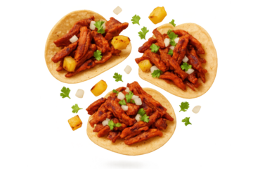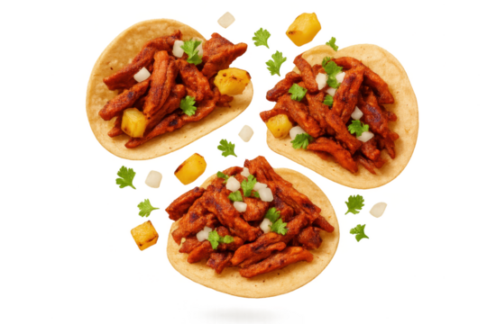 Al Pastor tacos with pineapple, isolated on transparent background.