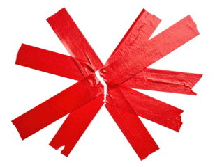 A shiny red satin bow and ribbon arranged in a criss cross pattern against a black background