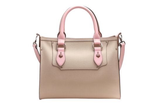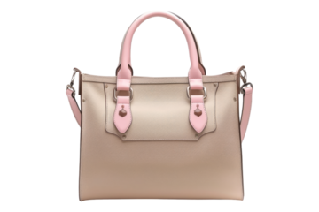 Beigh pink leather hand bag isolated on transparent background