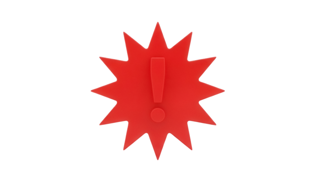 Red exclamation mark star isolated PNG on transparent background, attention sign for graphic design and web projects