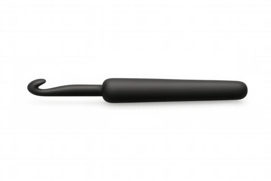 Black crochet hook lying horizontally on a transparent background, perfect for knitters and crafters