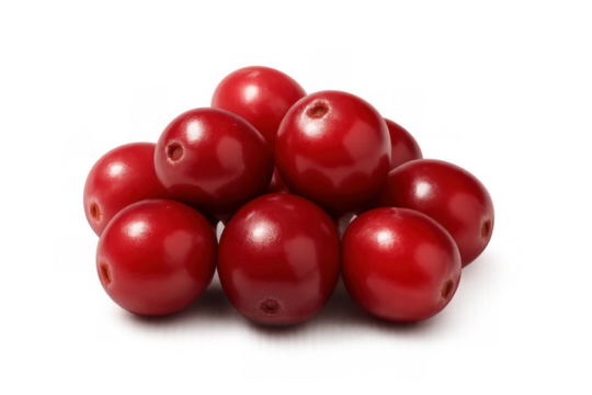 Fresh whole red cranberries piled together, ready for cooking or as a healthy ingredient, transparent background