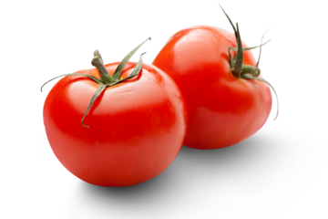 Tomato red whole and half cut vegetables isolated transparent png. Solanum lycopersicum ripe fruit.