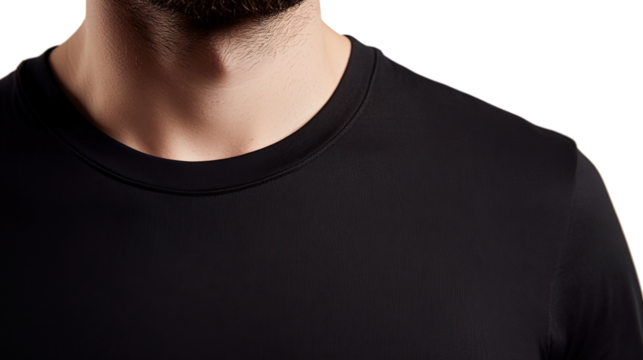 Close up of a man in a black t-shirt showing shoulder part isolated on transparent background