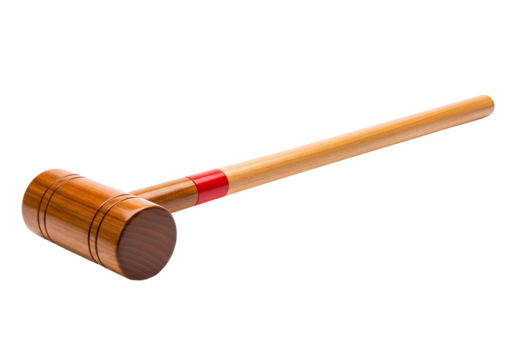 Classic croquet mallet used for outdoor lawn games isolated on transparent background