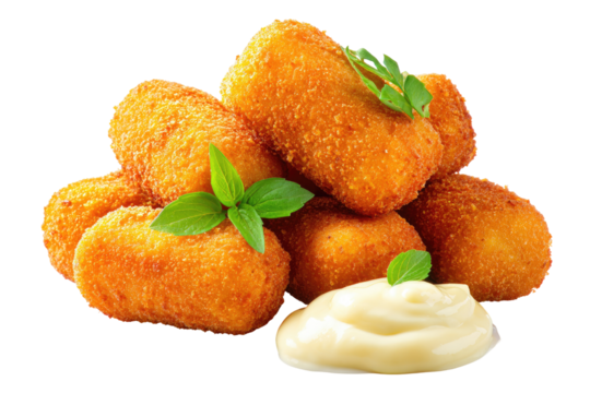 Cartoon croquettes cute is...ed on white background with celery leaf