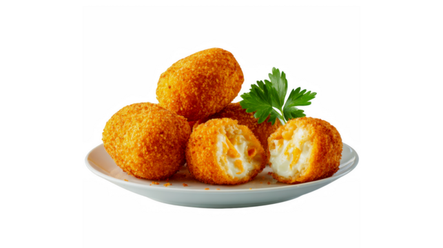 Delicious deep-fried meat croquettes with cheesy filling isolated on transparent background