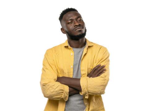 Confident Young Professional: A sharply dressed young man with a confident, self-assured demeanor, stands with crossed arms, exuding a sense of authority and capability.