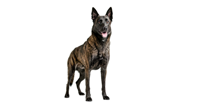Dutch Shepherd Dog Standing Alert Balanced Stance or Sitting Attentively Clean Seamless White Studio Background