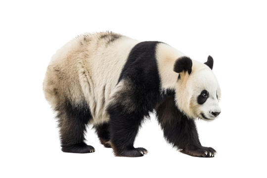 Unique panda with a playful stance and expressive eyes isolated on transparent background