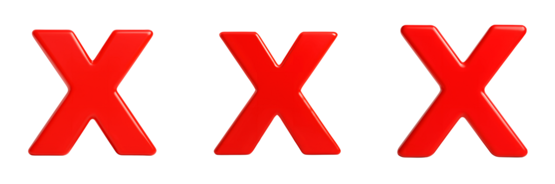 Red glossy x mark icon symbolizing wrong, error, cancel, denial, or incorrect choice with transparent background