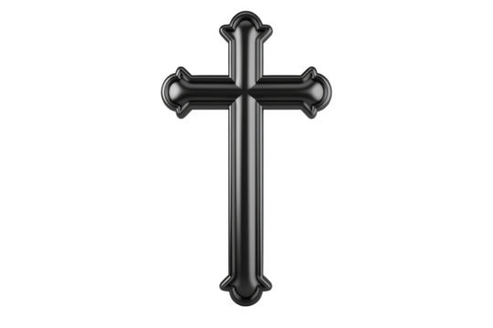 bold black cross silhouette stands tall against transparency background, symbolizing faith and spirituality. Its minimalistic design evokes sense of calm and reflection