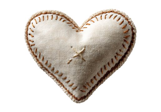Isolated Heart Pillow with Subtle Cross Stitch on Transparent Background