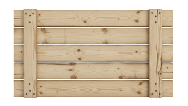 Wooden crate isolated PNG, light brown planks with crossbars for storage and transportation, on transparent background