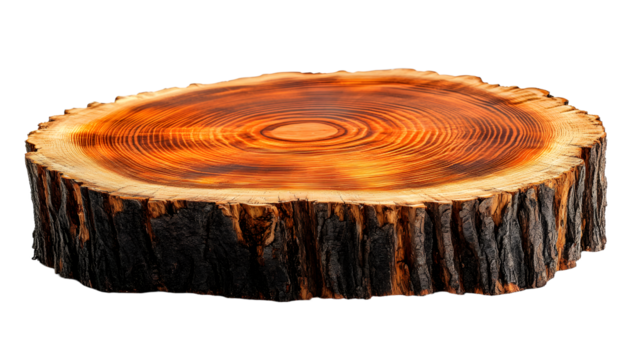 Cross-Section Wood Slice with Transparent Background, Natural Brown Texture, 3D Realism Design Element
