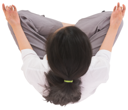 A monk in an orange robe meditates crosslegged, isolated on a transparent background