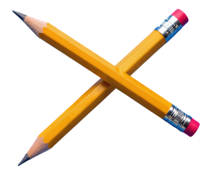 Yellow Pencils Crossed with Pink Erasers on Transparent Background, 3D Realism Graphic for Digital Media