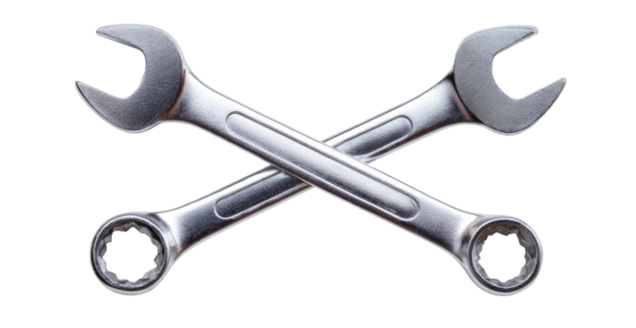 Two crossed wrenches isolated on transparent background