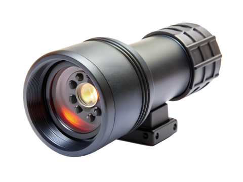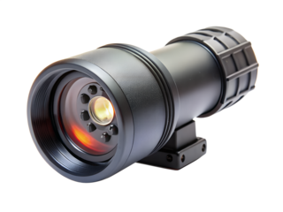 Optical scope with magnification and protective cover, isolated on transparent background