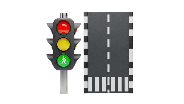 Traffic Light and Pedestrian Crossing on White Background